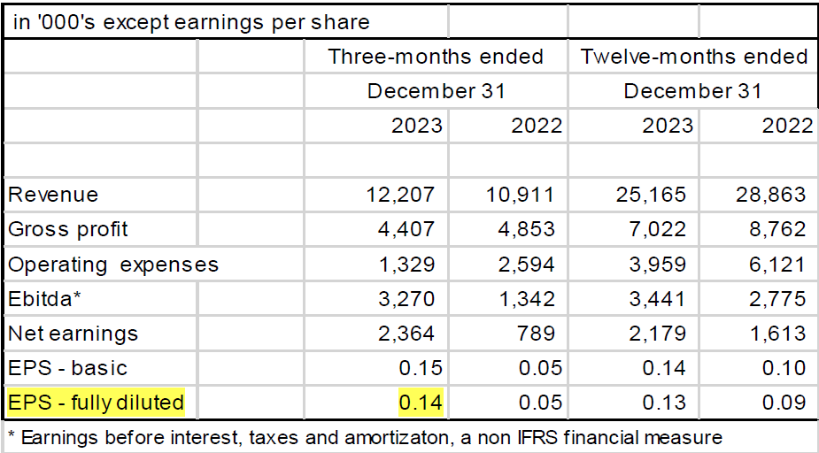 It is quite the wait when a company reports its 2023 results, only until after 2024Q1 is already finished. But it was soooo worth it. An EPS of CAD 0.14 in the quarter. That means that Biorem traded at < 7x earnings when I first wrote about it, for 2023Q4 alone!!